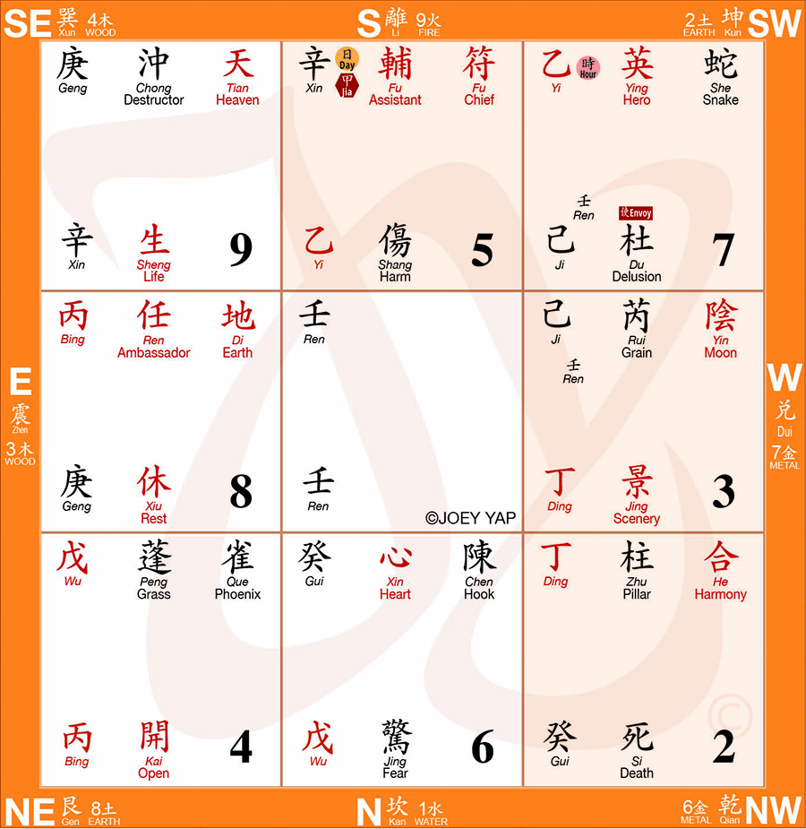 Take for example the QiMen Destiny chart of one Mr. X above. Mr. X is looking for a suitable side gig as an alternative to his current day job. In QiMen Destiny analysis, the palace representing your side gig is the Wealth palace. This is because the side gig is not your main career option but rather an opportunity to produce more side income.